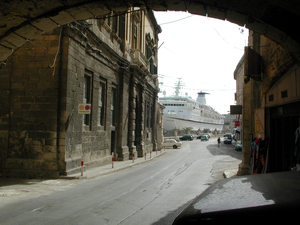 3/9/2003 La Valletta: la Rhapsody ormeggiata in banchina. E' quasi l'ora di partire per Tunisi. Avanti . . . . . Indietro
