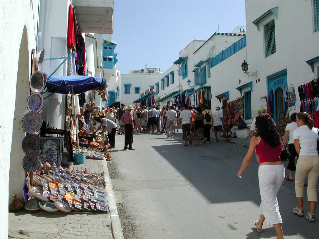 4/9/2003 Sidi Bou Said: una via attrezzata per i turisti.