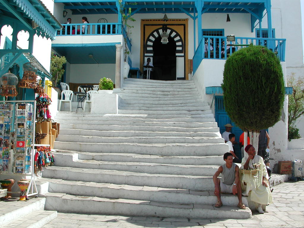 4/9/2003 Sidi Bou Said: l'ingresso che vedete sulla cima della scalinata conduce... in un bar.