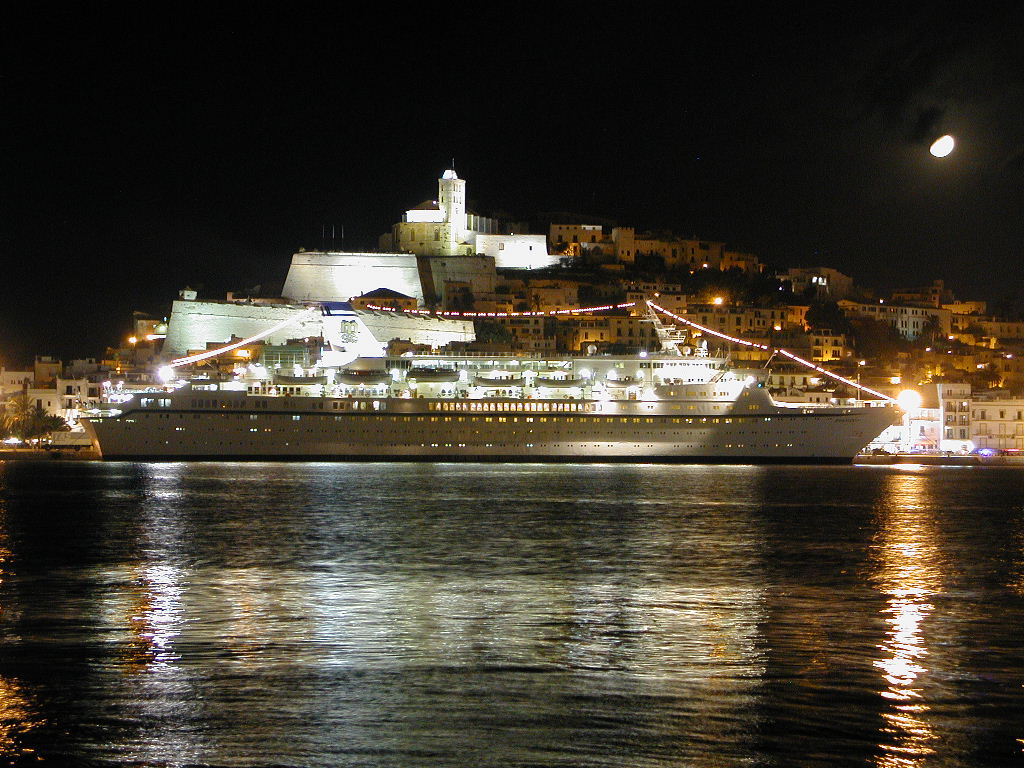 5/9/2003 Ibiza: la M/n Rhapsody da bella mostra di sè in una splendida notte alle Baleari.